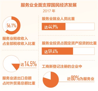 十八大以來,服務(wù)業(yè)在創(chuàng)造稅收、吸納就業(yè)、新設(shè)市場主體、固定資產(chǎn)投資、對外貿(mào)易等方面全面領(lǐng)跑,支撐國民經(jīng)濟(jì)健康發(fā)展。