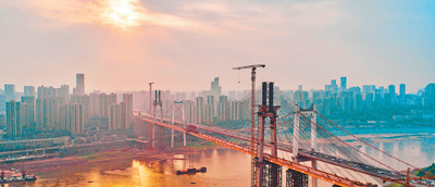 5月5日,世界最大跨度的自錨式懸索橋——重慶市鵝公巖軌道交通專用橋在長(zhǎng)江上順利合龍。該橋全長(zhǎng)1650米,其中主跨為600米的雙塔雙索面五跨連續(xù)鋼箱梁自錨式懸索,跨徑為同類型橋梁的世界之最?鐝降脑龃,對(duì)橋梁設(shè)計(jì)能力、高強(qiáng)度厚鋼板材料性能及其焊接工藝、施工能力、施工裝備等方面提出了更高要求。