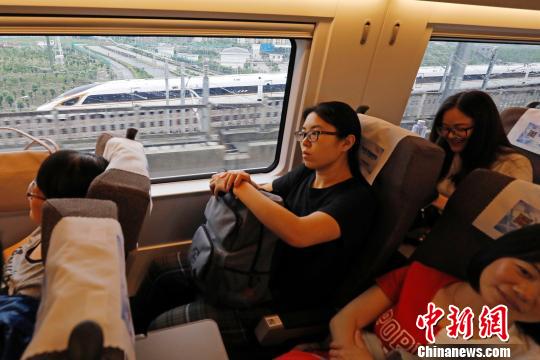 長(zhǎng)編組“復(fù)興號(hào)”動(dòng)車組正式運(yùn)營(yíng),旅客用手機(jī)記錄下這一歷史性時(shí)刻!∫罅⑶ 攝