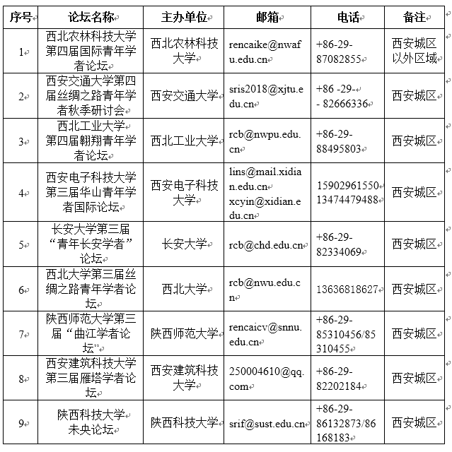 進一步咨詢,可發(fā)郵件或致電各分論壇,聯(lián)系方式見附表。