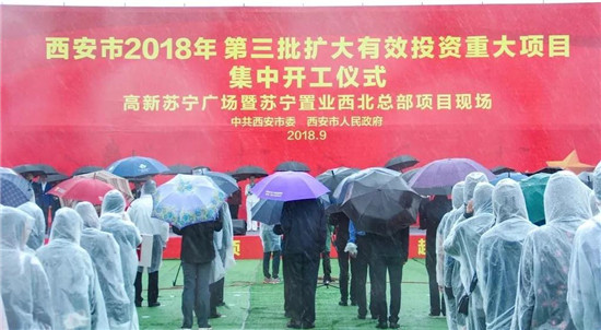 9月15日,西安高新蘇寧廣場(chǎng)暨蘇寧置業(yè)西北總部項(xiàng)目舉行盛大開工儀式。作為西安市政府2018年擴(kuò)大有效投資重大項(xiàng)目,來自陜西盛西安市市委、市政府各級(jí)領(lǐng)導(dǎo)、社會(huì)各界嘉賓共同見證西安蘇寧廣場(chǎng)這一歷史性時(shí)刻。