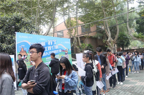 隨著2019年“1200工程”十七期校園招聘全球啟動(dòng)發(fā)布會(huì)9月9日在蘇寧易購集團(tuán)總部所在地南京落下帷幕,9月17日,蘇寧集團(tuán)在西安交通大學(xué)興慶校區(qū)開展了“1200工程”十七期校園招聘會(huì),此次招聘宣講會(huì)吸引了大量西安學(xué)子的關(guān)注,現(xiàn)場座無虛席,300個(gè)座位,到場500多位同學(xué)。這也從側(cè)面映射出蘇寧的“智慧零售”被越來越多的學(xué)子所認(rèn)可,大家都想在蘇寧的大舞臺(tái)上一展風(fēng)采。