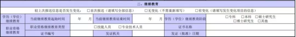 繼續(xù)教育一欄中,除了基本信息的填寫,同樣是在有方格的地方進行對應框內打“√”。