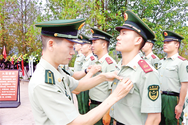 日前,武警安康支隊(duì)組織官兵赴平利縣老縣鎮(zhèn)蔣家坪村和牛蹄嶺戰(zhàn)役遺址公園開(kāi)展形式多樣的主題黨日活動(dòng),引導(dǎo)廣大官兵在追尋歷史根脈、接受思想洗禮中堅(jiān)定“聽(tīng)黨話、跟黨走”的政治信念。趙坤 陳翔 攝
