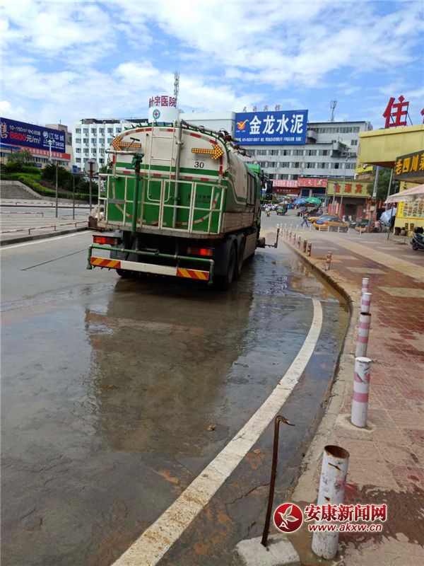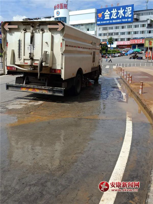 江北環(huán)衛(wèi)站清理火車站邊因大雨流下來(lái)的黃泥