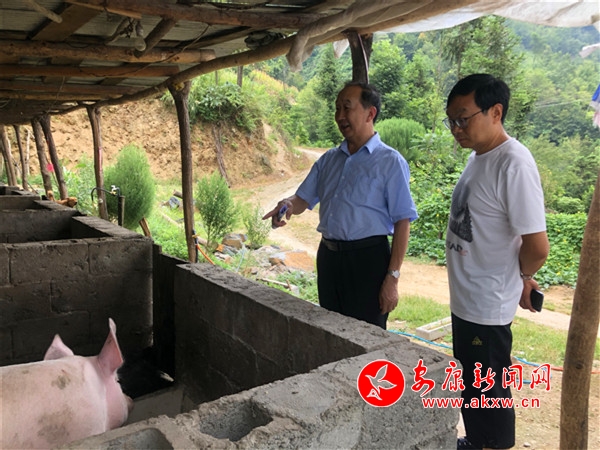 市婦幼保健院鐘院長到戶開展工作,查看貧困戶產(chǎn)業(yè)發(fā)展,幫助貧困戶銷售兩頭豬。GN7安康新聞網(wǎng)