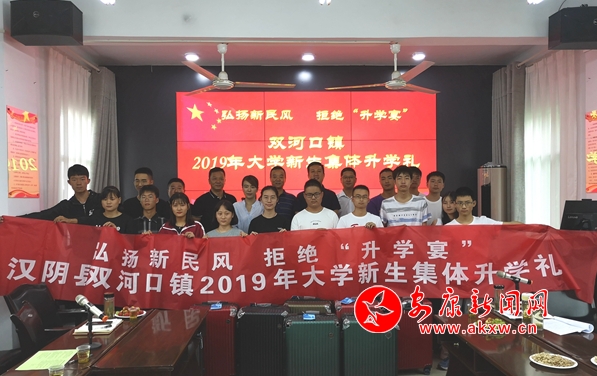 本網(wǎng)訊 (通訊員 黃偉)十年寒窗磨一劍,高考角逐躍龍門。8月9日,漢陰縣雙河口鎮(zhèn)組織舉辦2019年大學新生集體升學禮,進一步弘揚新民風,拒絕“升學宴”,倡導勤儉節(jié)約,知恩感恩的社會新風。