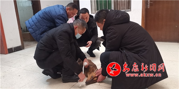 接到報(bào)告后,大竹園鎮(zhèn)派出所、農(nóng)綜站、綜合執(zhí)法辦公室三部門聯(lián)合出動(dòng),迅速趕往現(xiàn)場(chǎng),通過現(xiàn)場(chǎng)比對(duì)鑒定,發(fā)現(xiàn)這只小動(dòng)物是國(guó)家二級(jí)野生保護(hù)動(dòng)物麂子。為穩(wěn)定麂子傷情,工作人員現(xiàn)場(chǎng)進(jìn)行了傷口處理,并將其帶回鎮(zhèn)農(nóng)綜站邀請(qǐng)獸醫(yī)進(jìn)行診治。6fT安康新聞網(wǎng)