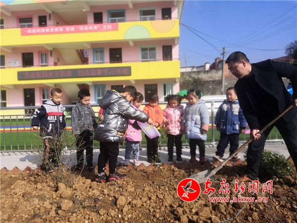 本網(wǎng)訊(通訊員 章軒 謝曉溪)陽春三月,草長鶯飛間,冬天的寒意還未褪去,春天帶著綠色的氣息走來,春風(fēng)吹綠了枝頭上的嫩芽,吹綠了校園的小草,也吹動(dòng)了師生愛綠護(hù)綠、裝扮校園的熱情。3月12日,漢濱區(qū)流水鎮(zhèn)學(xué)坊埡小學(xué)和學(xué)坊埡社區(qū)幼兒園舉行了植樹節(jié)系列活動(dòng)。