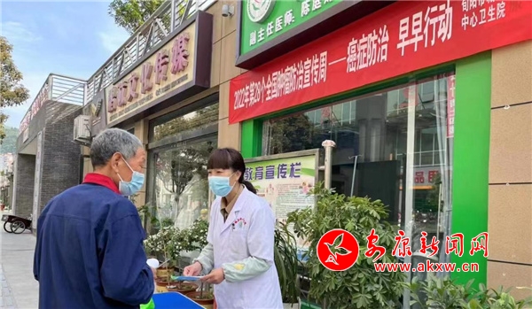 本網(wǎng)訊(通訊員 陳子賢)2022年4月15日至21日是第28個全國腫瘤防治宣傳周。為進一步提高全社會癌癥防控意識,促進廣大居民了解癌癥預(yù)防知識,主動干預(yù)癌癥高危因素,營造全民防癌抗癌的良好氛圍。4月20日早上,旬陽市城關(guān)中心衛(wèi)生院走進下菜灣社區(qū),聯(lián)合社區(qū)衛(wèi)生室開展 “癌癥防治 早早行動”為主題的全國腫瘤防治宣傳周活動。
