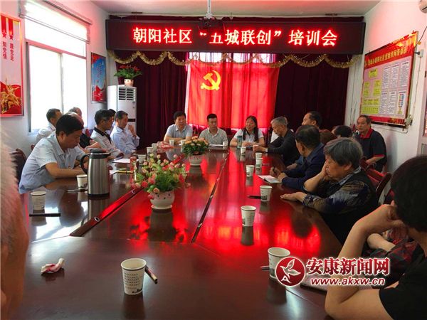 朝陽(yáng)社區(qū)召開(kāi)“五城聯(lián)創(chuàng)”培訓(xùn)會(huì)。并對(duì)參會(huì)人員發(fā)放宣傳環(huán)保袋、紙杯等。bdj安康新聞網(wǎng)