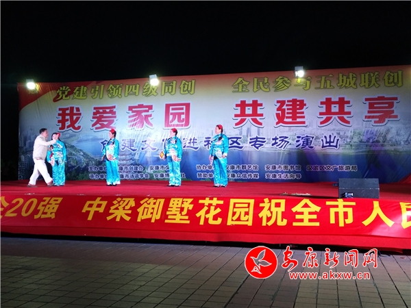 安康新聞網(wǎng)訊(實(shí)習(xí)記者 陸青波)8月31日,“黨建引領(lǐng)四級(jí)同創(chuàng)、全民參與五城聯(lián)創(chuàng),我愛(ài)家園、共建共享”創(chuàng)建文化進(jìn)社區(qū)專(zhuān)場(chǎng)演出活動(dòng)在金州廣場(chǎng)舉行;顒(dòng)由市創(chuàng)建辦、市文聯(lián)主辦,市詩(shī)詞學(xué)會(huì)、安康博閱學(xué)社承辦,市群藝館、市圖書(shū)館、漢濱區(qū)文廣旅游局協(xié)辦。8hQ安康新聞網(wǎng)