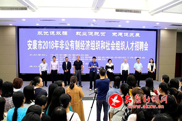 安康新聞網(wǎng)訊  9月15日上午,首屆安康市非公有制經(jīng)濟組織和社會組織人才招聘會在安康高新區(qū)創(chuàng)新創(chuàng)業(yè)中心舉辦,市人大常委會副主任、市委組織部常務(wù)副部長鄒俊杰在開幕式上致辭,市政協(xié)副主席、市工商聯(lián)主席孟平主持開幕式,市委組織部、市非公和社會組織黨工委、市人社局、安康職業(yè)技術(shù)學(xué)院、市工商聯(lián)有關(guān)負責(zé)同志參加開幕式。gFf安康新聞網(wǎng)