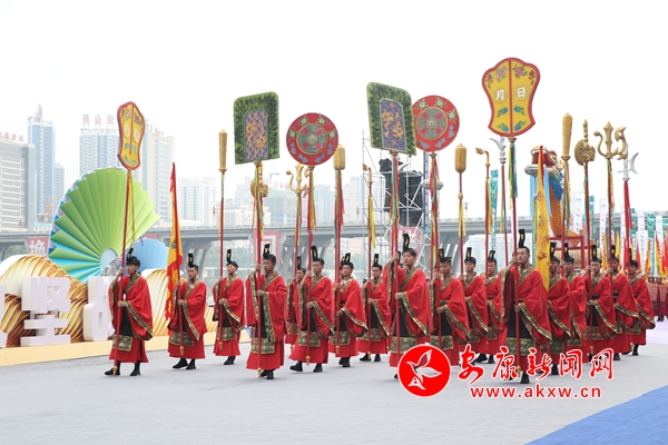 “請(qǐng)龍了”上午9時(shí)整,觀禮臺(tái)上空傳來小女孩清澈空靈的聲音,龍舟主題活動(dòng)進(jìn)入第一篇章——“龍騰漢江·祭”。百面大鼓同時(shí)敲響,請(qǐng)龍方陣步履矯健,護(hù)送龍頭至觀禮臺(tái)正中。百名少年兒童著漢服、持竹簡(jiǎn)、頌祭文,主祭官捋龍須、撣浮塵、三叩首。18名壯漢敬酒摔碗祭龍頭,合龍方陣護(hù)送龍身緩步走來,鼓樂齊鳴中完成合龍。龍頭祭祀圓滿禮成,儀式莊嚴(yán)而神圣,傳遞出安康萬千百姓祈福風(fēng)調(diào)雨順、萬家平安的美好心愿。