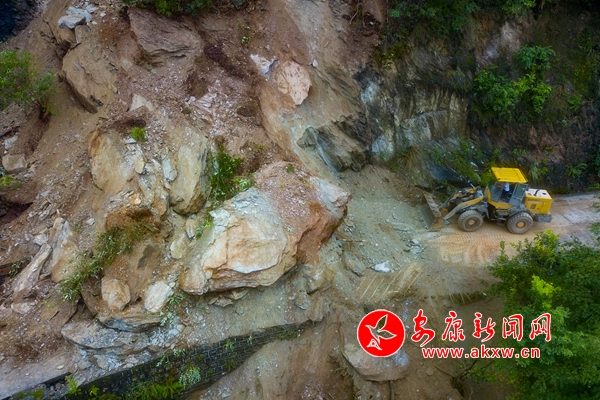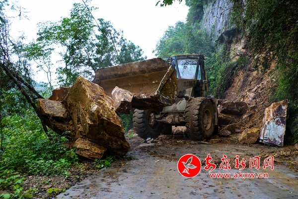 連日來的持續(xù)強(qiáng)降雨導(dǎo)致漢濱區(qū)境內(nèi)農(nóng)村公路水毀比較嚴(yán)重,多處路段相繼發(fā)生山體滑坡。災(zāi)情發(fā)生后,漢濱區(qū)農(nóng)村公路管理局立即組織30余臺(tái)大型機(jī)械進(jìn)行搶險(xiǎn),目前已搶通道路40條,還有5條正在搶通中。9月18日,一臺(tái)機(jī)械正在清理受災(zāi)道路的垮塌土石。(記者 張喬 通訊員 張昊 攝)vN7安康新聞網(wǎng)