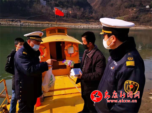 (海事人員為漢濱區(qū)青套渡口渡工發(fā)放個(gè)人防護(hù)用品)EDD安康新聞網(wǎng)
