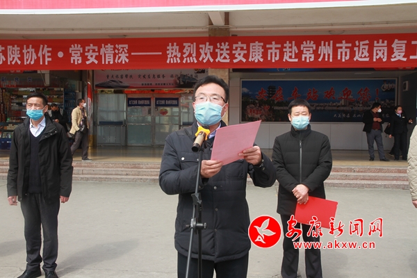 本報(bào)訊(記者 陸青波)3 月 1 日,我市開(kāi)通安康-西安-常州“點(diǎn)對(duì)點(diǎn)”返崗復(fù)工人員免費(fèi)專(zhuān)列,集中輸送151名務(wù)工人員前往常州返崗復(fù)工。市委常委、副市長(zhǎng)劉建平出席送站儀式,并就保障農(nóng)民工返程返崗做好服務(wù)工作提出要求,對(duì)務(wù)工人員提出殷切希望。