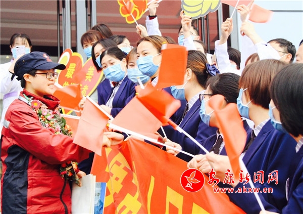 座談會溫馨、簡短,走出會議中心,歡迎英雄歸來的隊伍仍等在原地,他們揮動著旗子,喊著口號,急切地將援鄂英雄們擁到人群中間,讓相機定格這勝利、喜悅的一刻。w4s安康新聞網(wǎng)