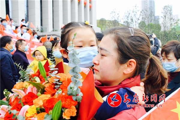 和唐小粉一樣,冉仁玉的丈夫張勇也一直盼著重逢這一天,“這段時間,幾乎是掰著指頭過”。他說,妻子當時做出支援武漢的決定時,沒有和家人商量,走了之后,大家問他“怎么回事,那么危險的地方,你讓老婆去,萬一出了事怎么辦”,他每天心里都繃著一根弦。“幸運的是,今天她平安健康回來了,我也如釋重負,現(xiàn)在特別放松、特別高興。”w4s安康新聞網(wǎng)