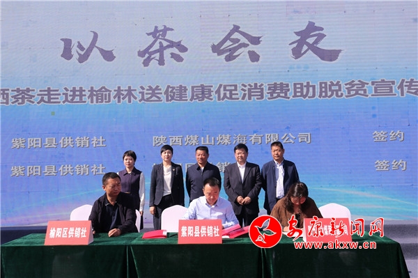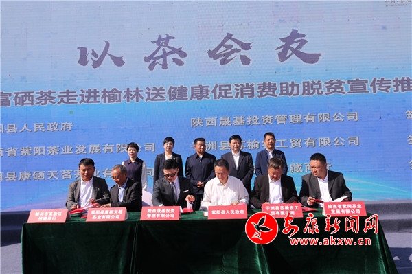 活動(dòng)儀式上,國(guó)家一級(jí)茶葉審評(píng)技師、陜西省茶人聯(lián)誼會(huì)會(huì)長(zhǎng)韓星海對(duì)安康紫陽(yáng)富硒茶作專業(yè)點(diǎn)評(píng),紫陽(yáng)縣有關(guān)部門負(fù)責(zé)人作紫陽(yáng)招商推介、紫陽(yáng)富硒茶推介、紫陽(yáng)旅游推介;顒(dòng)進(jìn)行了簽約、紫陽(yáng)富硒茶專家點(diǎn)評(píng)和“紫陽(yáng)富硒特產(chǎn)營(yíng)銷中心”授牌儀式。紫陽(yáng)縣人民政府與陜西晟基投資管理有限公司簽訂富硒礦泉水綜合開發(fā)項(xiàng)目;陜西省紫陽(yáng)茶業(yè)發(fā)展有限公司與子洲縣蘇榆農(nóng)工貿(mào)有限公司簽訂“紫陽(yáng)富硒茶、子州”養(yǎng)生茶項(xiàng)目合作開發(fā)協(xié)議;紫陽(yáng)縣康硒天茗茶業(yè)有限公司與榆林市高新區(qū)惟藏商行簽訂紫陽(yáng)富硒茶購(gòu)銷協(xié)議;紫陽(yáng)縣供銷聯(lián)社與陜西煤山煤海有限公司簽訂共建“榆林市紫陽(yáng)富硒特產(chǎn)營(yíng)銷中心”協(xié)議,紫陽(yáng)縣供銷聯(lián)社與榆陽(yáng)區(qū)供銷聯(lián)社簽訂“地方特產(chǎn)供銷互促合作協(xié)議”。