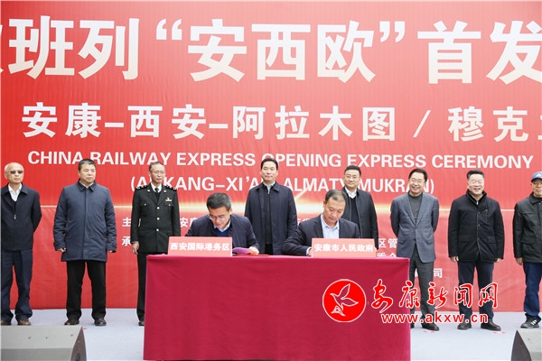 據(jù)了解,“安西歐”專列將從安康始發(fā),抵達(dá)西安港集結(jié)中轉(zhuǎn),再次搭乘中歐專列長安號(hào),向西發(fā)往哈薩克斯坦阿拉木圖、烏茲別克斯坦塔什干、德國穆克蘭等中歐主要站點(diǎn)城市。專列首發(fā)儀式上,市政府與西安國際港務(wù)區(qū)管委會(huì)簽訂了《開行中歐班列(安西歐)合作協(xié)議》。