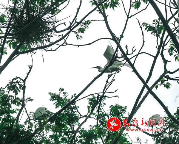 本網(wǎng)訊(記者 潘潤(rùn)生 實(shí)習(xí)記者 安。┰诮ㄔO(shè)中的高新區(qū)新時(shí)代大道施工現(xiàn)場(chǎng),遠(yuǎn)遠(yuǎn)望去,有一片“突兀”的小樹(shù)林,林中有30多個(gè)鳥(niǎo)窩,大量白鷺在樹(shù)叢中引吭、飛舞。4月23日,大雨滂沱,記者在接到線索趕到這里時(shí),就立刻被這雨中雪白的精靈震撼、吸引。