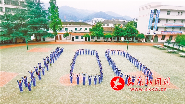 (6月25日,石泉縣城關(guān)鎮(zhèn)中心小學“童心向黨輝煌百年”主題教育活動中,學生組成“100”、心形等字樣造型方陣,手揮國旗,齊聲高呼:祝中國共產(chǎn)黨生日快樂!杜懷 許啟軍 攝)