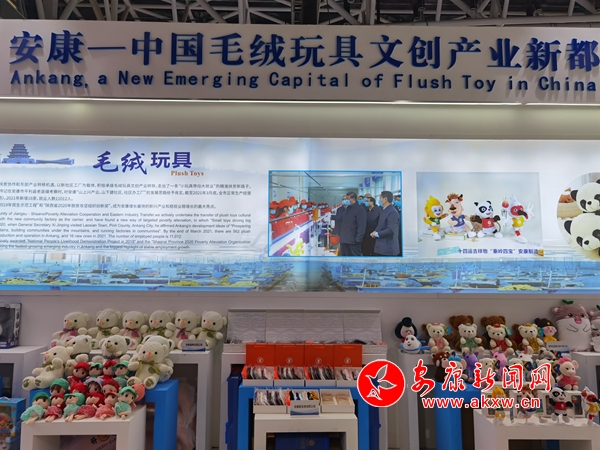 今年五月,第五屆絲綢之路國(guó)際博覽會(huì)暨中國(guó)東西部合作與投資貿(mào)易洽談會(huì)在西安舉行。走進(jìn)安康展館,毛絨玩具搭建的小山格外顯眼,十四運(yùn)吉祥物“秦嶺四寶”占據(jù)C位,展廳四周也用毛絨玩具娃娃進(jìn)行點(diǎn)綴。前來(lái)拍照、采購(gòu)、咨詢(xún)的市民絡(luò)繹不絕。不少企業(yè)現(xiàn)場(chǎng)接到訂單。