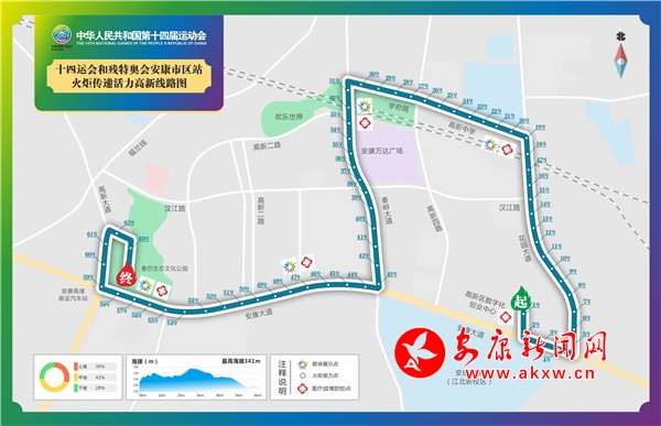 9月8日上午,十四運(yùn)會和殘?zhí)貖W會圣火將在安康國家高新技術(shù)產(chǎn)業(yè)開發(fā)區(qū)進(jìn)行第12站傳遞,屆時(shí)將有63名滿懷激情的火炬手,高舉象征希望的圣火跑完全程。安康火炬?zhèn)鬟f路線全長5.7公里,起跑點(diǎn)為安康高新區(qū)創(chuàng)新創(chuàng)業(yè)中心,途徑花園大道、學(xué)府路、秦嶺大道、安康大道,收火點(diǎn)為安康高新區(qū)秦巴生態(tài)文化公園。整個(gè)線路散發(fā)著生態(tài)、文明、奮進(jìn)的氣息,集中展示了十八大以來安康經(jīng)濟(jì)社會高質(zhì)量發(fā)展成果。