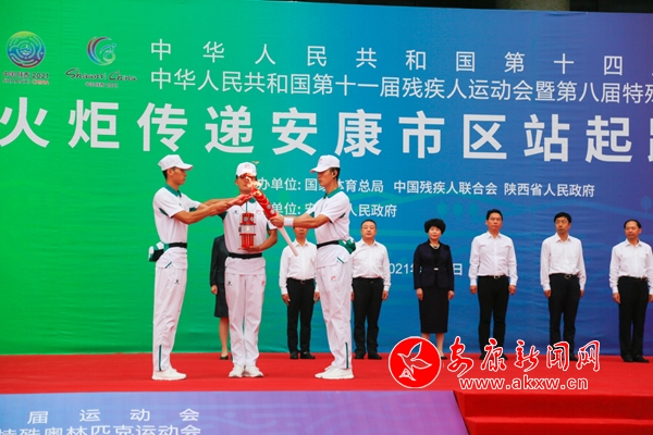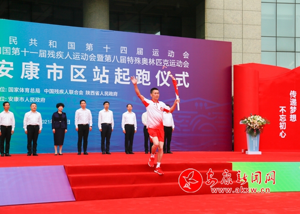省殘疾人聯(lián)合會理事長、殘?zhí)貖W會組委會執(zhí)行副秘書長相紅霞,市委書記、十四運會和殘?zhí)貖W會安康市執(zhí)委會主任趙俊民,市委副書記、市長武文罡,原陜西省南水北調(diào)辦公室主任、十四運會和殘?zhí)貖W會場館建設(shè)部駐會副部長朱昱,省生態(tài)環(huán)境廳二級巡視員、十四運會和殘?zhí)貖W會組委會環(huán)境治理部駐會副部長王文,市委常委、宣傳部部長羅雪劍出席火炬?zhèn)鬟f起跑儀式;鹁?zhèn)鬟f起跑儀式由副市長、十四運會和殘?zhí)貖W會安康市執(zhí)委會副主任楊淼主持。