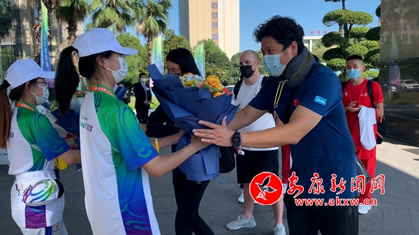 “各位領(lǐng)隊(duì)、教練、運(yùn)動(dòng)員,歡迎來(lái)到陜西省安康市參加十四運(yùn)會(huì)馬拉松游泳項(xiàng)目比賽。我代表競(jìng)委會(huì)向大家表示熱烈的歡迎,祝大家在安康參賽期間工作順利、生活愉快、勇創(chuàng)佳績(jī)。”隨后,現(xiàn)場(chǎng)志愿者向報(bào)到的運(yùn)動(dòng)隊(duì)送上鮮花。