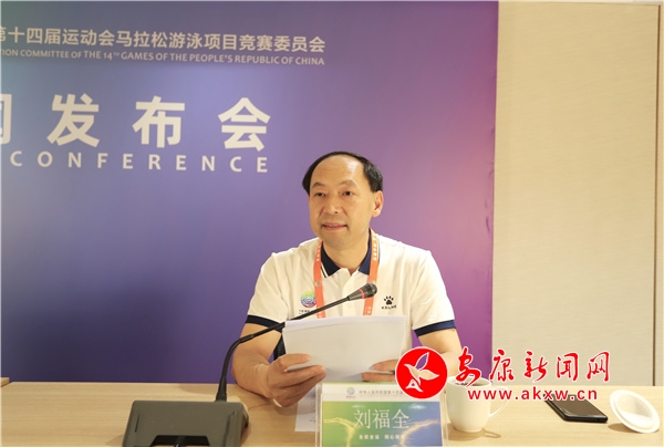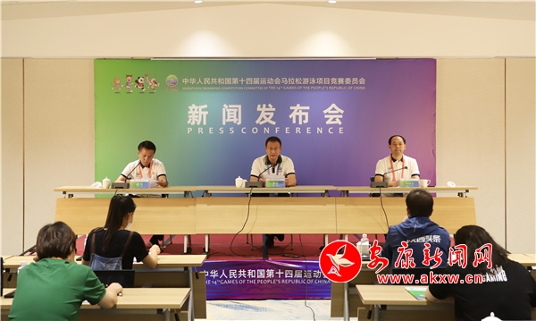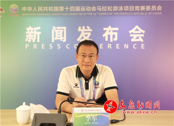 本網(wǎng)訊(記者 魏濤 陸青波)9月11日下午,第十四屆全國運動會馬拉松游泳項目賽前新聞發(fā)布會在瀛湖酒店新聞發(fā)布廳召開。十四運會馬拉松游泳項目競委會副主任、國家體育總局游泳運動管理中心副書記李軍,十四運會馬拉松游泳項目競委會副主任、安康市政府副秘書長劉福全出席發(fā)布會并介紹相關(guān)情況。