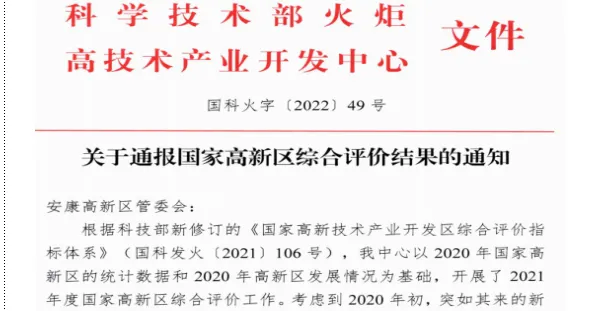2月17日,國家科技部火炬中心公布了2021年度國家高新區(qū)評價結(jié)果:在全國157個國家高新區(qū)中,安康高新區(qū)綜合排名再創(chuàng)新高,較2020年度提升5個位次,升至全國第58名,位列全省7家國家高新區(qū)第3名。uBc安康新聞網(wǎng)