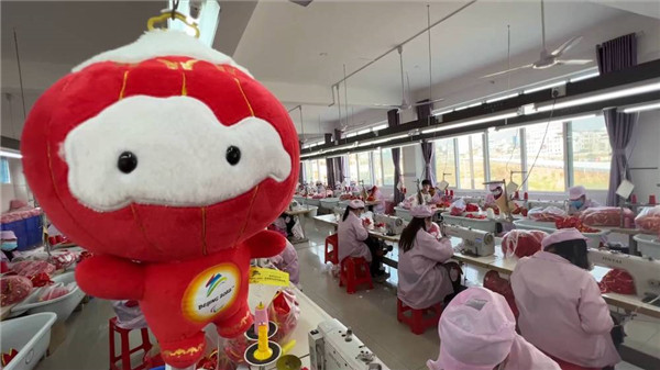 在位于秦巴山區(qū)的陜西省安康市漢濱區(qū),易地搬遷群眾正在社區(qū)工廠內(nèi)趕制交付“冰墩墩”“雪容融”,貢獻(xiàn)秦巴山區(qū)群眾的冬奧熱情。