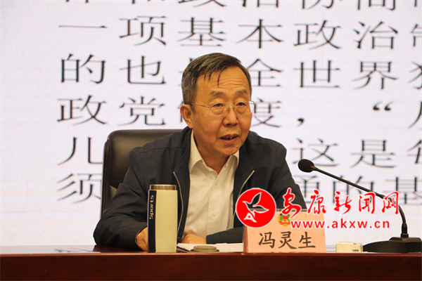會(huì)議邀請(qǐng)省政協(xié)第十二屆常委、中國(guó)人民政協(xié)理論研究會(huì)理事、陜西省政協(xié)理論與實(shí)踐研究會(huì)會(huì)長(zhǎng)馮靈生做專題輔導(dǎo)。馮靈生從中國(guó)共產(chǎn)黨統(tǒng)一戰(zhàn)線工作的偉大創(chuàng)造、人民政協(xié)的發(fā)展歷程、人民政協(xié)的經(jīng)常性工作、如何做一名新時(shí)代合格的政協(xié)委員等四個(gè)方面精準(zhǔn)闡釋了人民政協(xié)的基本理論、基本知識(shí)以及政協(xié)委員履行職能的基本要求,報(bào)告深入淺出、內(nèi)涵豐富,在履職盡責(zé)、參政議政、發(fā)揮委員作用上具有很強(qiáng)的理論指導(dǎo)作用。