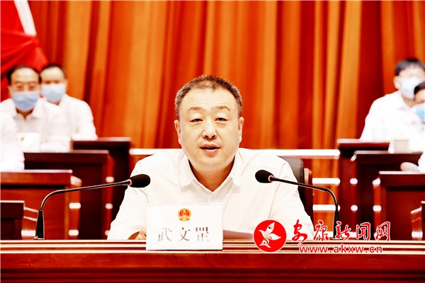 武文罡強調,要堅定不移沿著習近平總書記指引的方向砥礪前行,一張藍圖繪到底。深刻領會總書記三次來陜考察重要講話重要指示蘊含的真理偉力、實踐偉力,貫通落實“五項要求”“五個扎實”和“譜寫高質量發(fā)展新篇章”的殷殷囑托,常學常思悟,對標對表行,聚焦聚力干,確?倳浢恳痪渲匾v話、每一項重要指示都在安康落到實處、見到實效。要緊盯高質量發(fā)展“五個堅持”思路目標加力發(fā)力,快馬加鞭往前趕。激發(fā)創(chuàng)新驅動力,狠抓高質量產(chǎn)業(yè)項目,加快推動新型城鎮(zhèn)化建設,全面推進鄉(xiāng)村振興,堅決守牢安全底線,奮力開創(chuàng)全市高質量發(fā)展新局面。要用心用情用力解決好人民群眾“急難愁盼”問題,為民服務守初心。深入踐行以人民為中心的發(fā)展思想,慎終如始抓好常態(tài)化疫情防控,多措并舉鞏固好脫貧攻堅成果,全力促進基本公共服務均等化,努力讓人民群眾有更多獲得感幸福感安全感。要聚力鞏固拓展風清氣正心齊勁足的干事創(chuàng)業(yè)氛圍,攜手并肩共奮進。人人講團結,人人重實干,人人揚正氣,踏踏實實干好工作,一步一個腳印前行,為加快建成西北生態(tài)經(jīng)濟強市、聚力建設幸福安康作出新的更大貢獻。