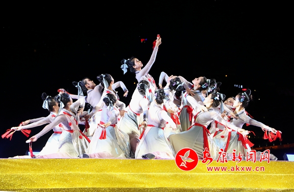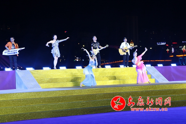 粼粼波光微微風(fēng),樂舞燈火“靚”漢江。演出以絢麗奪目的燈光秀《多彩漢江》開場,漢江兩岸五光十色的燈光隨著音樂的節(jié)律不斷變換、舞動,使得一江兩岸如夢如幻、詩意盎然,動感十足的爵士舞蹈《動感安康》展現(xiàn)了安康的青春活力,原汁原味的本地歌舞《山歌不唱不開懷》《漢水旗韻》《荷包香安康》《漢江漁歌》《喬木花》《號子·龍舟》等以獨特的唱腔、曼妙的舞姿展現(xiàn)傳統(tǒng)漢水文化以及秦巴兒女勤勞淳樸的精神風(fēng)貌,熱情激昂的歌舞《母親安康》演唱出漢水兒女熱愛山水的樸素愿望和對美好生活的向往。演出期間,旅游形象大使還對紫陽、漢陰、嵐皋等縣區(qū)的特產(chǎn)、美食、旅游景點、傳統(tǒng)文化等進(jìn)行推介。
