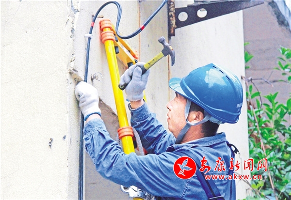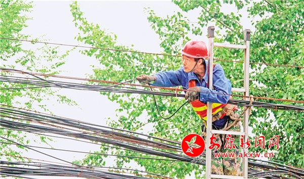 與此同時,不遠處的公路局家屬院內,國網(wǎng)漢濱分公司的工作人員也正在隔離區(qū)域內進行空中作業(yè)。盡管汗水浸濕了厚重的牛仔工裝,但為了盡量縮短施工時間,現(xiàn)場的工作人員仍以最快的速度甄別、剪除廢線,梳理捆扎。不一會兒,一小片雜亂線纜就變得橫平豎直、高低一致、規(guī)范有序。