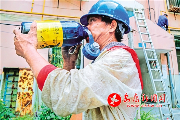 圖6:7月17日下午,漢濱區(qū)印染廠社區(qū)內,中國電信公司安康分公司施工人員的作業(yè)間隙。 李春江 攝