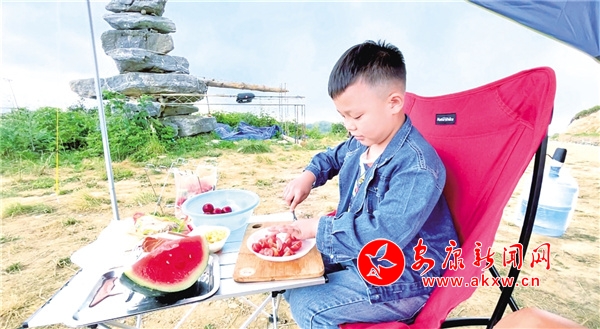 “感受一下大自然,體驗另一種生活形態(tài),讓一家人遠離網(wǎng)絡和手機回歸自然。”吳坤周末剛從嵐皋神河源的巴山草原露營地回來,在這個夏天,他選擇帶著家人在周末用露營的方式親近自然。
