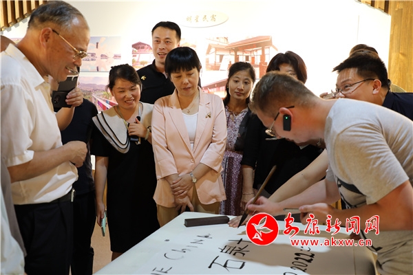 在石泉縣金蠶小鎮(zhèn),外國記者朋友們先后深入鎏金銅蠶出土處和金蠶之鄉(xiāng)展覽館,現(xiàn)場探尋金蠶歷史,感受絲路文化。大家均被眼前燦爛悠久的蠶桑文化觸動,不禁發(fā)出贊嘆:絲綢之路真?zhèn)ゴ螅⒂^結束,各路記者們久久不愿離去,連連用毛筆在紙上為這片土地留下不同語言的祝福。來自白俄羅斯國家廣播電視公司的安東·瓦休凱維奇甚至用流暢的中文寫下——“石泉十美”,以表達對“絲路源點”省的熱愛。阿曼觀點報記者費薩爾·賽義德·穆罕默德·阿爾薩迪則用阿拉伯語寫下:“絲綢之路將我們連接在一起!”他寫完后意味深長地表示:“來到展覽館之后,我更加深刻地認識到,絲綢之路是將阿拉伯人和阿拉伯歷史跟中國歷史連接在一起的重要橋梁。”
