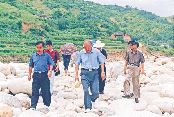 在救災(zāi)的過程中,熊邦高有時會面臨生命危險。那天從石泉救災(zāi)返回安康已是午后,行至一橋橋頭,熊邦高提出要去漢濱區(qū)瀛湖鎮(zhèn)查看災(zāi)情。當(dāng)時去瀛湖鎮(zhèn)只有江南一條經(jīng)吉河向西的路,當(dāng)他們乘坐的小車行至吉河往西幾公里的地方時,險情發(fā)生了!車前突然由山上滑落下一整塊比小車還大的石頭擋住了去路。車剛停下,車后的泥石流飛馳而下,截斷了后路。汽車的輪胎被埋在泥石流中,車不能動,人不能出。無助之下,他們只好先電話求救,但因泥石流阻隔,人車都無法向他們靠攏。他們又向市公路部門求援,待挖掘機和鏟車趕到現(xiàn)場,先清理了車后的泥石流,又用炸藥炸碎了車前的巨石,這才得以脫險。