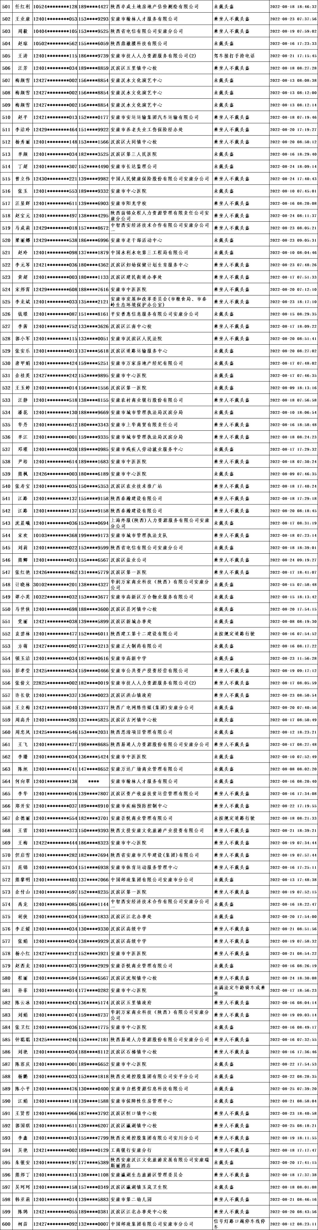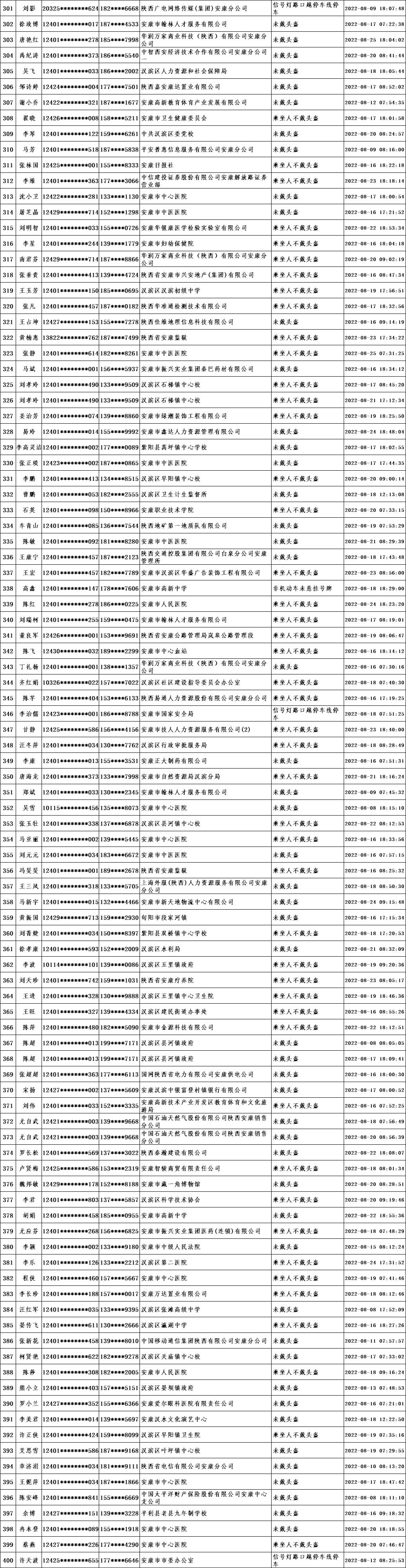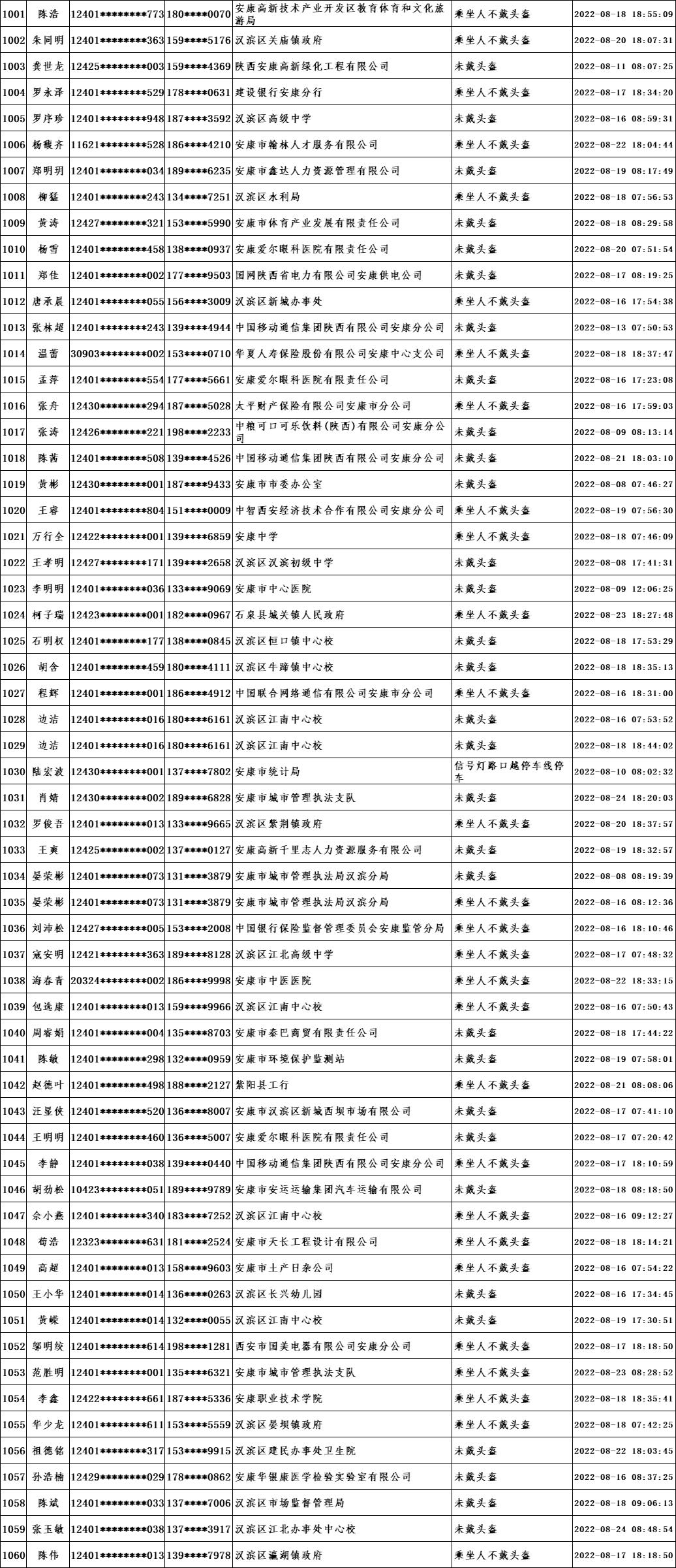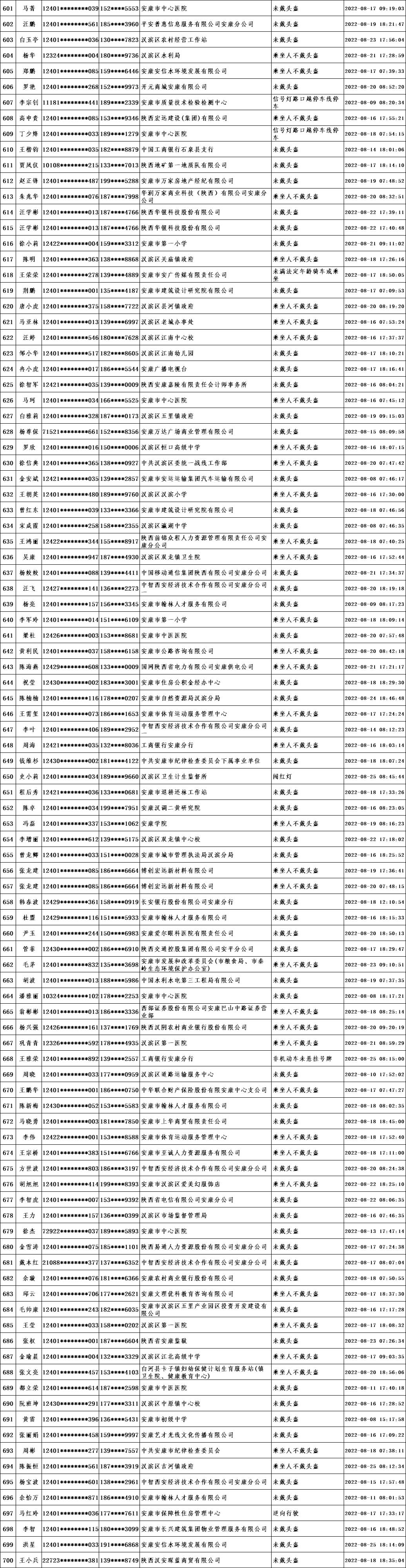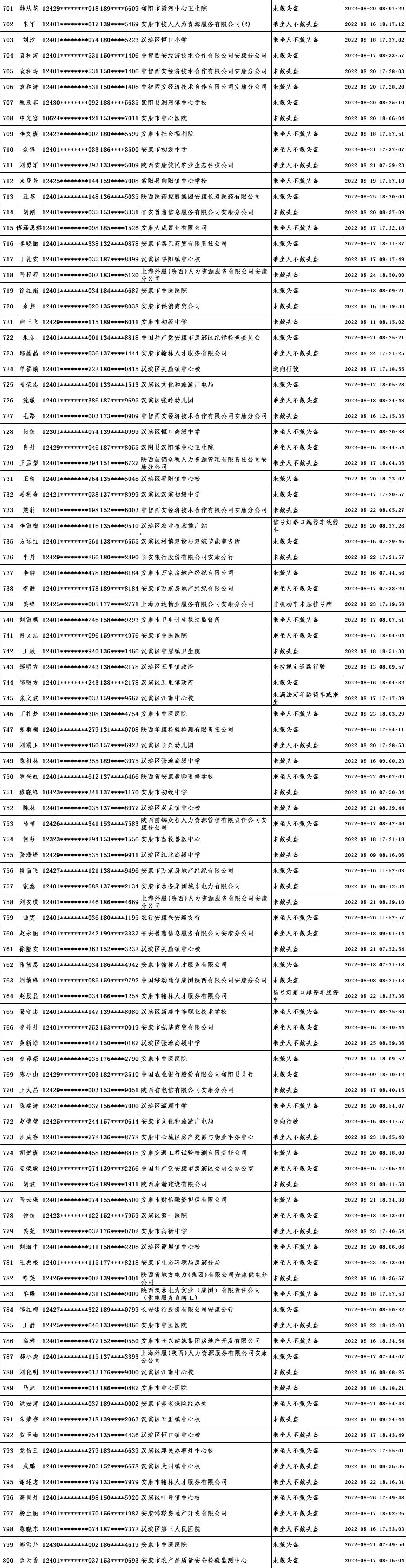 當(dāng)前,我市文明城市創(chuàng)建進(jìn)入沖刺階段,為深入推進(jìn)全國文明城市創(chuàng)建工作,引導(dǎo)廣大市民自覺遵守交通規(guī)則,共同營造文明交通環(huán)境,根據(jù)漢濱公安分局交警大隊(duì)提供的交通違法數(shù)據(jù),對近期城區(qū)道路交通違法情況進(jìn)行通報(bào)。希望廣大市民引以為鑒,自覺踐行“開文明車、走文明路、做文明人”,特別是公職人員要做到“文明創(chuàng)建我示范、文明禮讓我先行”,并教育引導(dǎo)家人、身邊人自覺遵守交通規(guī)則。各交通違法人員所在單位要全面加強(qiáng)干部職工教育管理,對交通違法人員進(jìn)行提醒教育,舉一反三,扎實(shí)整改,堅(jiān)決杜絕再次發(fā)生類似交通違法行為,以實(shí)際行動為全國文明城市創(chuàng)建作出貢獻(xiàn)。