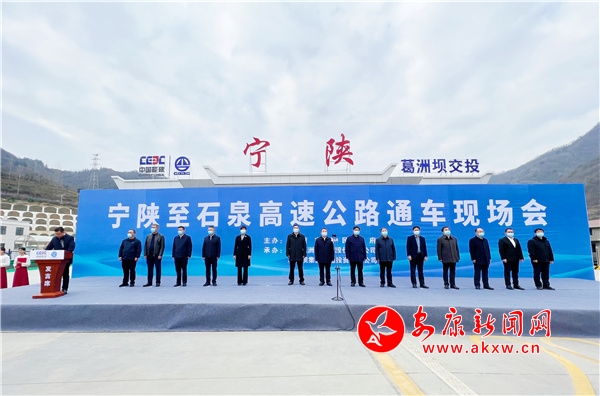 市委書(shū)記武文罡發(fā)布通車(chē)令。省交通運(yùn)輸廳副廳長(zhǎng)萬(wàn)振江講話(huà),葛洲壩集團(tuán)副總經(jīng)理徐志國(guó)介紹寧石高速公路建設(shè)情況。市委常委、常務(wù)副市長(zhǎng)高晶華致辭。副市長(zhǎng)周耀宜主持。市人大常委會(huì)主任王彪、市政協(xié)主席周建功,市委常委、宣傳部部長(zhǎng)、石泉縣委書(shū)記陳蓮,市政協(xié)副主席、寧陜縣委書(shū)記鄭紅丹,農(nóng)業(yè)銀行陜西省分行副行長(zhǎng)薛雷,陜西交控集團(tuán)黨委委員屈永照,葛洲壩集團(tuán)交通投資有限公司董事長(zhǎng)廖光榮,葛洲壩集團(tuán)路橋工程有限公司總經(jīng)理吳海軍,省交通運(yùn)輸廳總工程師伍石生,葛洲壩延黃寧石高速公路有限公司總經(jīng)理王勇出席會(huì)議。
