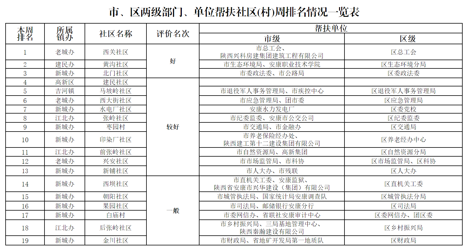 附件:市、區(qū)兩級(jí)部門幫扶社區(qū)(村)周排名情況一覽表