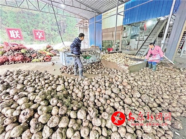 種了這么多魔芋,怎么來抵御市場風險?蔣家關村又想了一招,村魔芋專業(yè)合作社籌資140萬元,以入股形式吸納周邊的大灣村、草埡村集體股份經(jīng)濟合作社資金80萬元,加上村股份經(jīng)濟合作社130萬元的“三變”扶貧資金,建成了魔芋加工廠,采取訂單收購和保護價收購。伍先忠說,每到魔芋成熟時節(jié),加工廠工作人員就會“帶著秤桿子,開著車子,帶著票子”挨家挨戶收購。在旺季,這里每天能收購上百噸鮮魔芋,工廠每天也能加工30多噸。