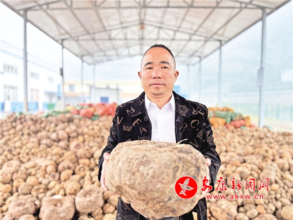 “這一個魔芋有20多斤。”聲音從背后傳來,一個不高但很結實的男人站在后面,他接著介紹,“這里只是一小部分,等天氣好點,還會有更多的魔芋被送進來。”