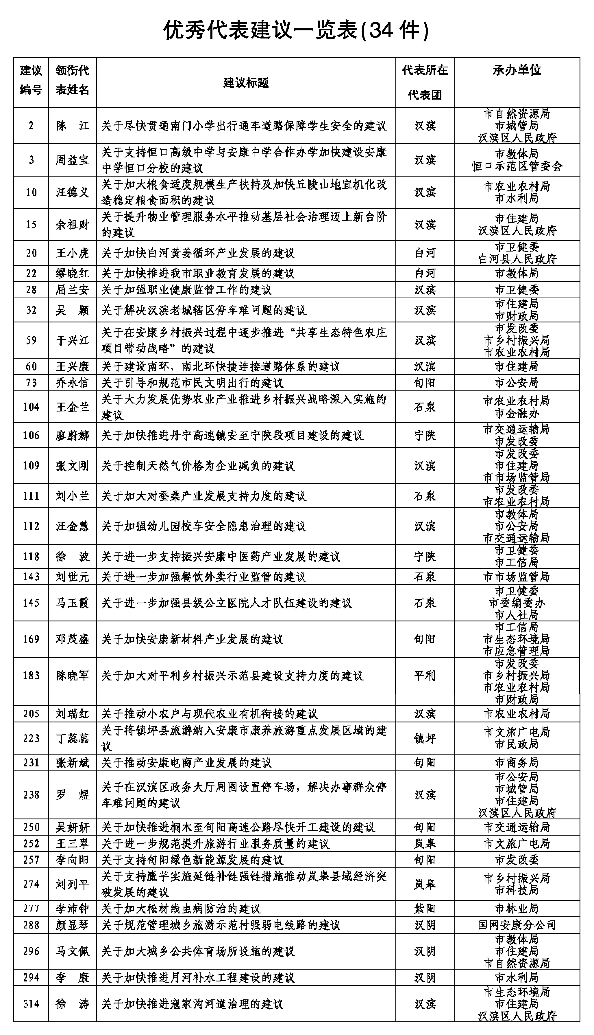 附件:優(yōu)秀代表建議一覽表