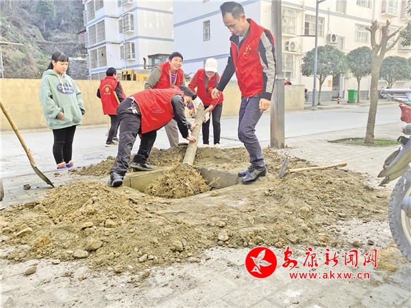 紫陽縣高橋鎮(zhèn)桂花樹社區(qū)黨支部開展“傳承雷鋒精神,爭做綠色使者”主題黨日活動,黨員們共植樹300余棵,進一步美化了社區(qū)環(huán)境。 李放 王順勤 攝