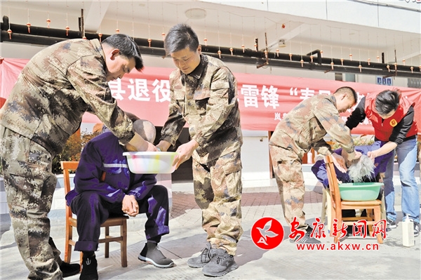 日前,嵐皋縣退役軍人事務局組織10名退役老兵來到縣中心敬老院,開展“春風敬老” 志愿服務活動,為老人們理發(fā)、洗頭、剪指甲,用實際行動踐行退役軍人志愿服務精神。 廖霖 攝